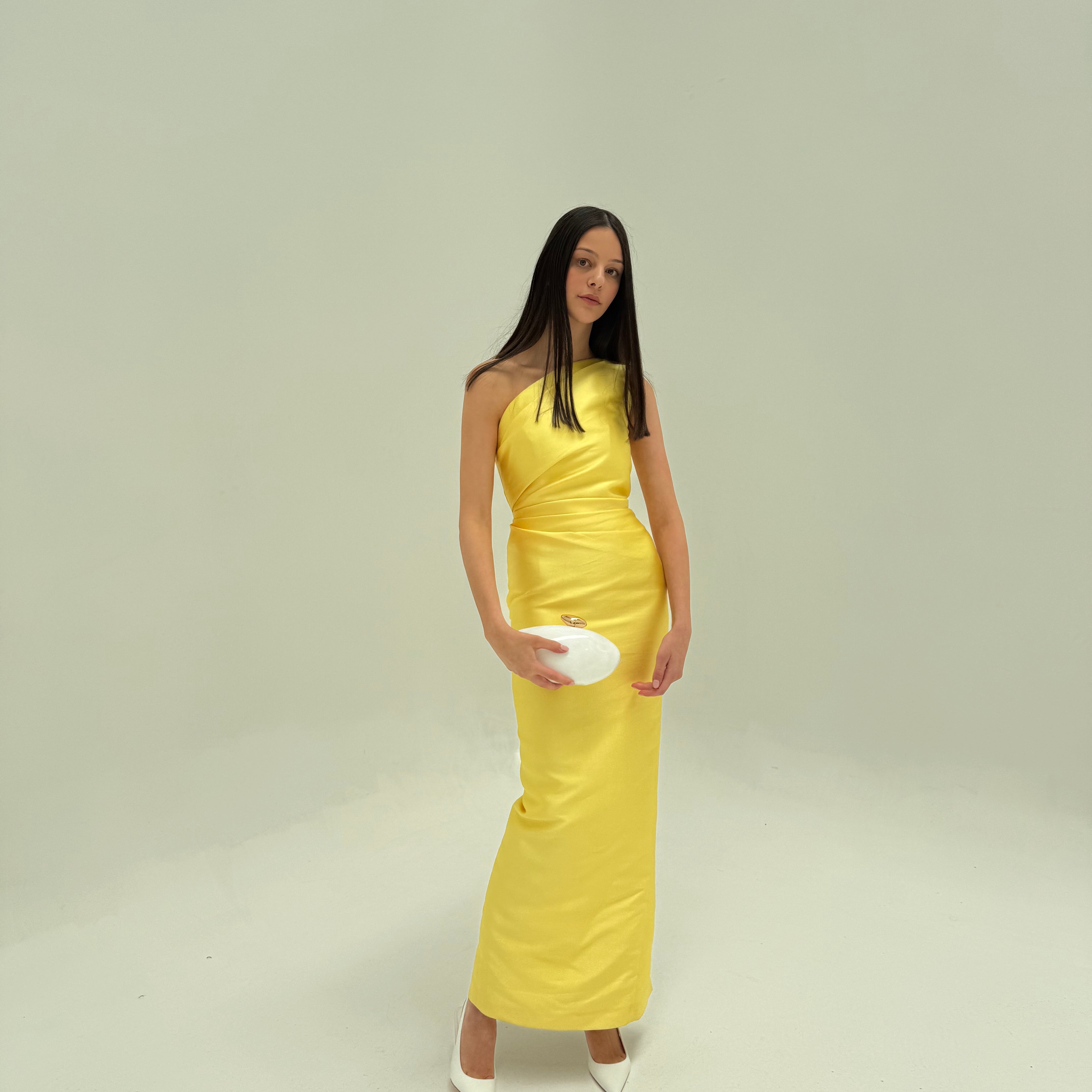 SOLACE LONDON (yellow) Kira Twill one shoulder gown