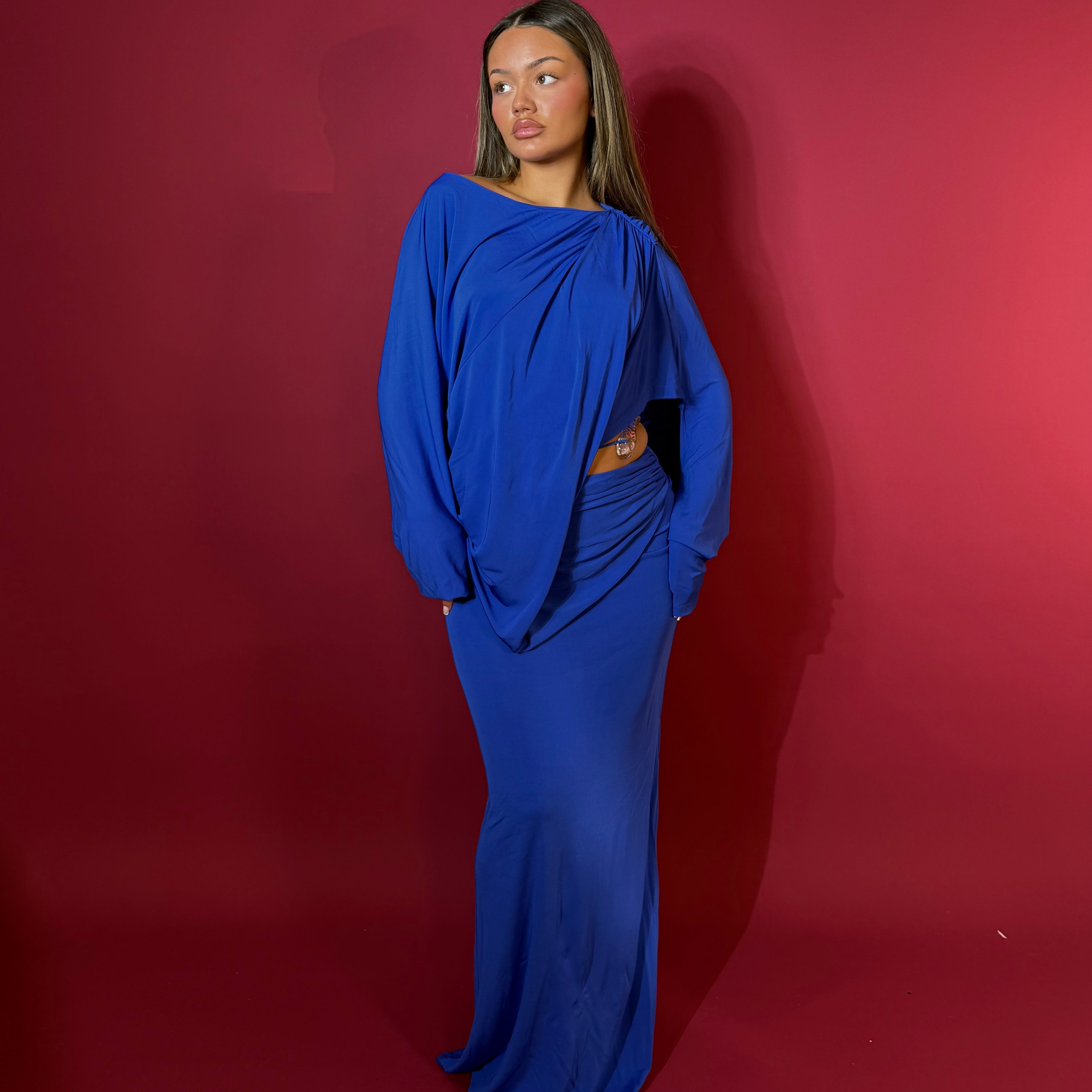 CHRISTOPHER ESBER (royal blue) Encased Nature Drape Maxi