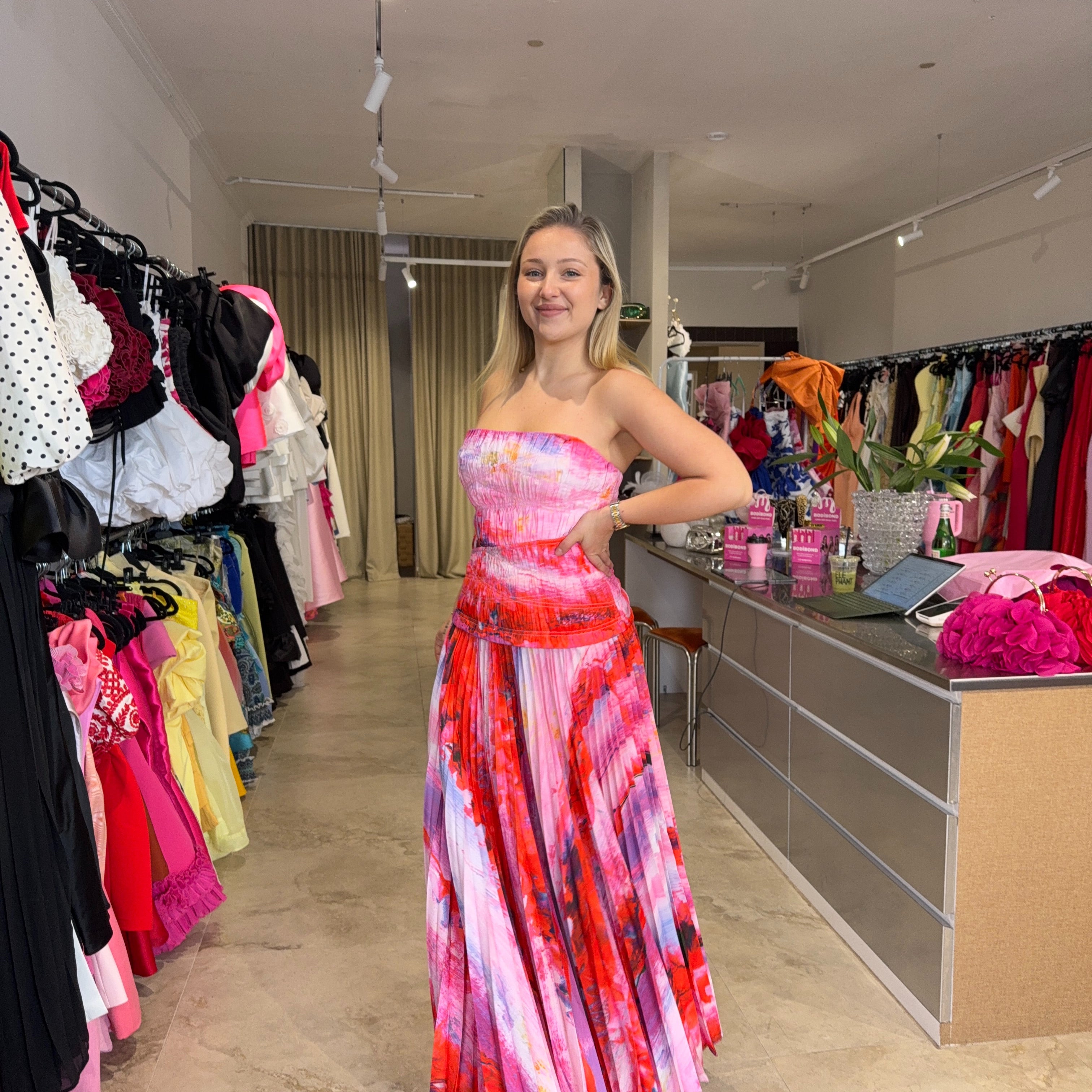 ACLER (orange/melon) Brayswick pleated strapless midi