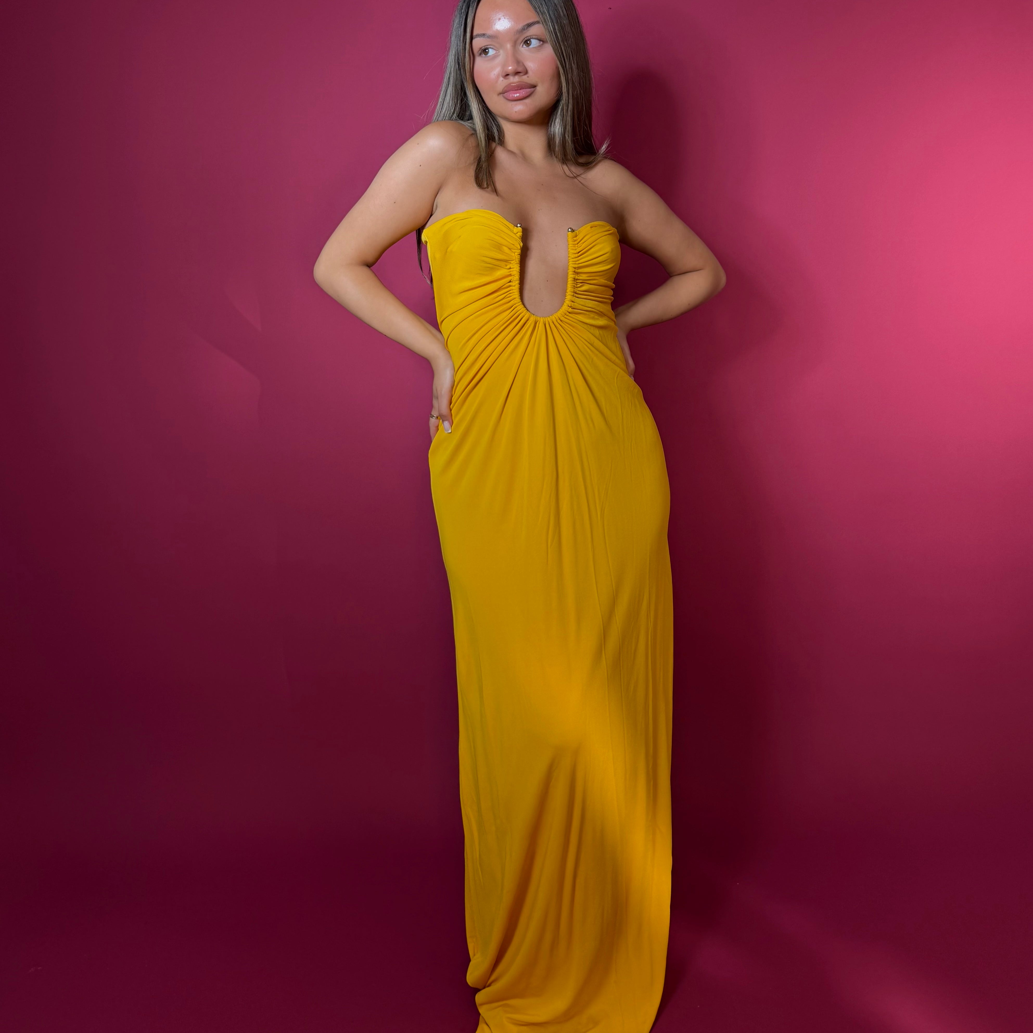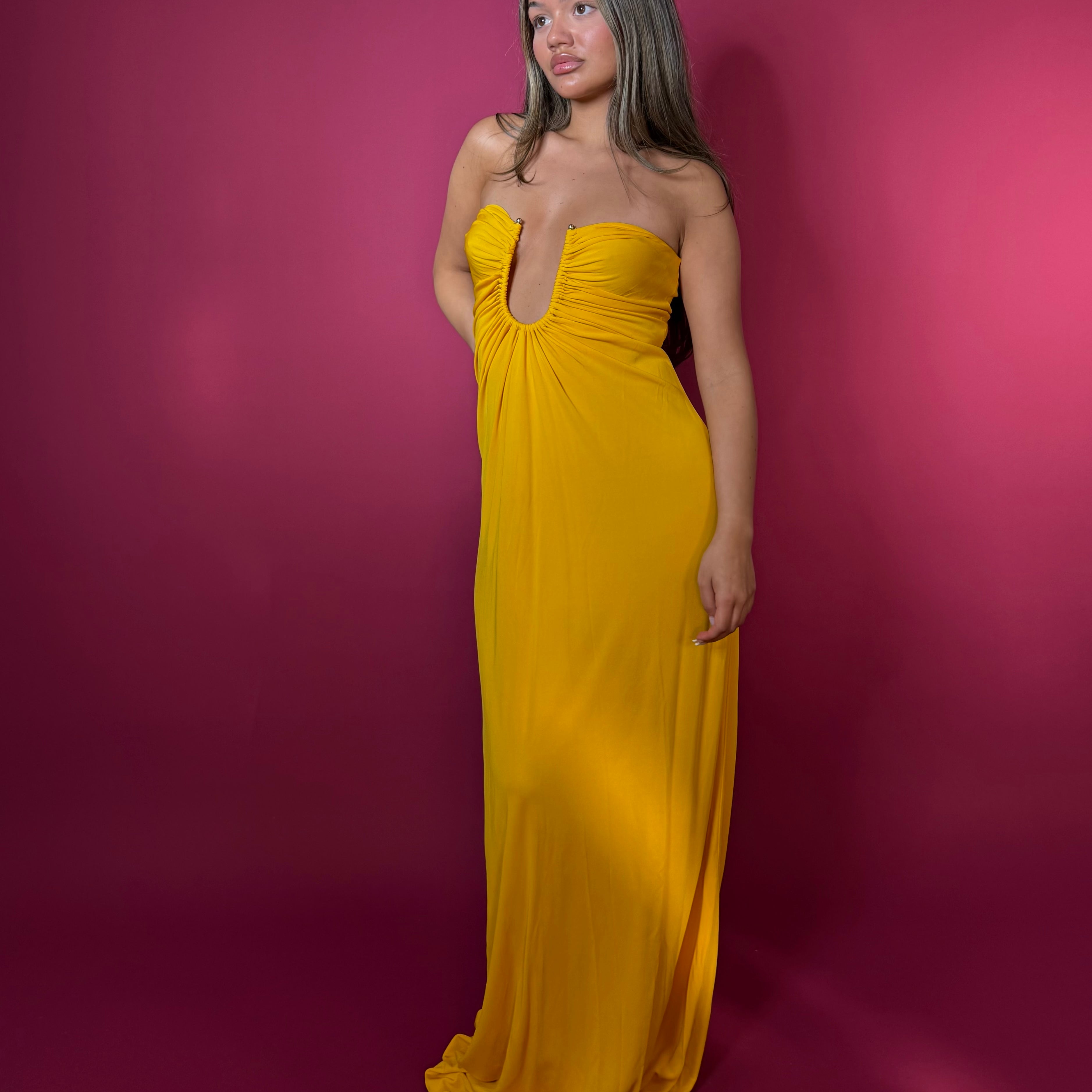 CHRISTOPHER ESBER (Saffron yellow) palm strapless gown