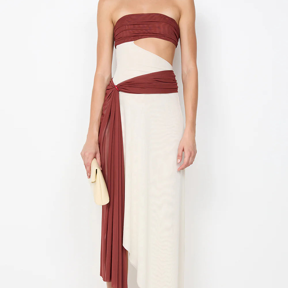 BEC AND BRIDGE (beige/red) Ayla strapless midi