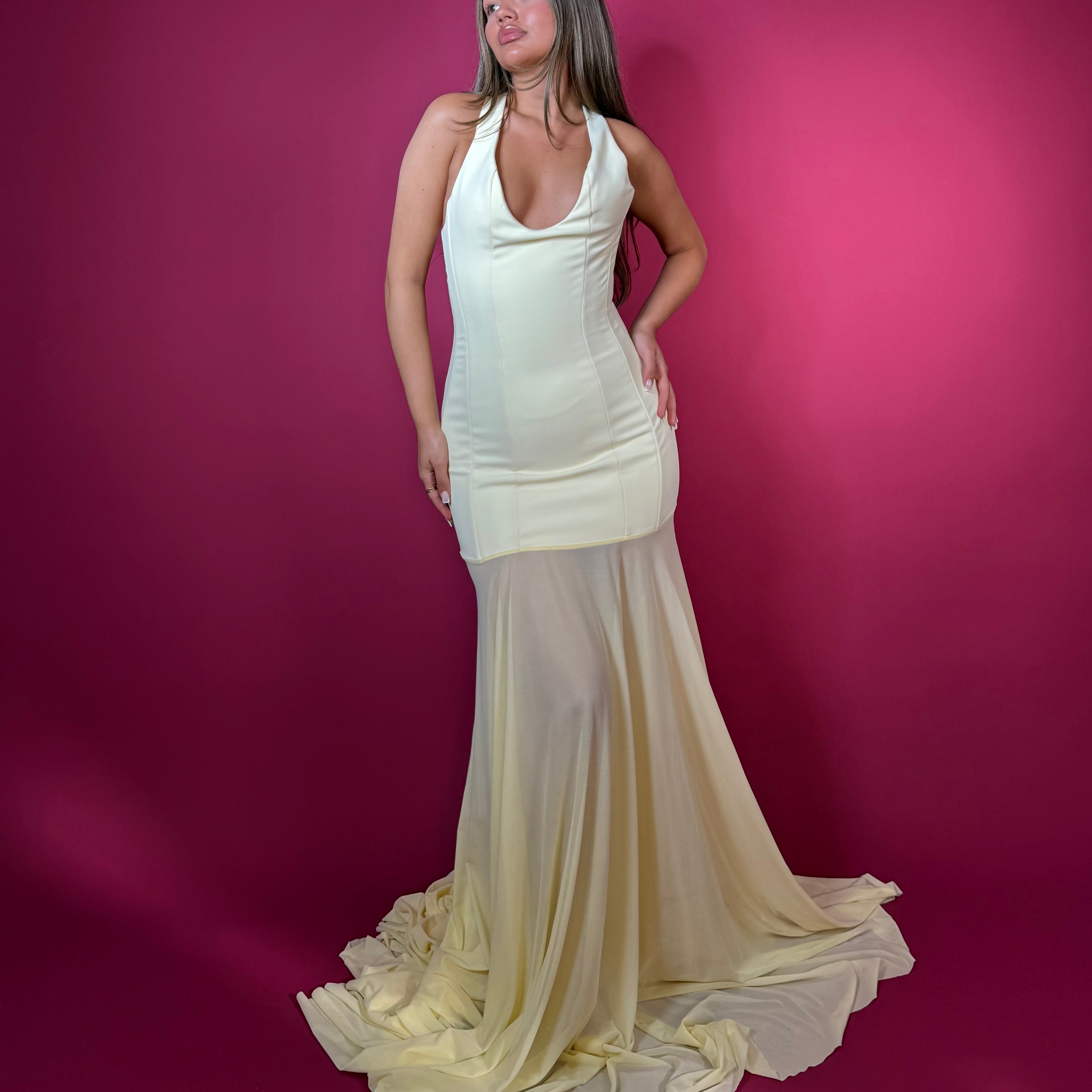 CHRISTOPHER ESBER (Saffron yellow) palm strapless gown