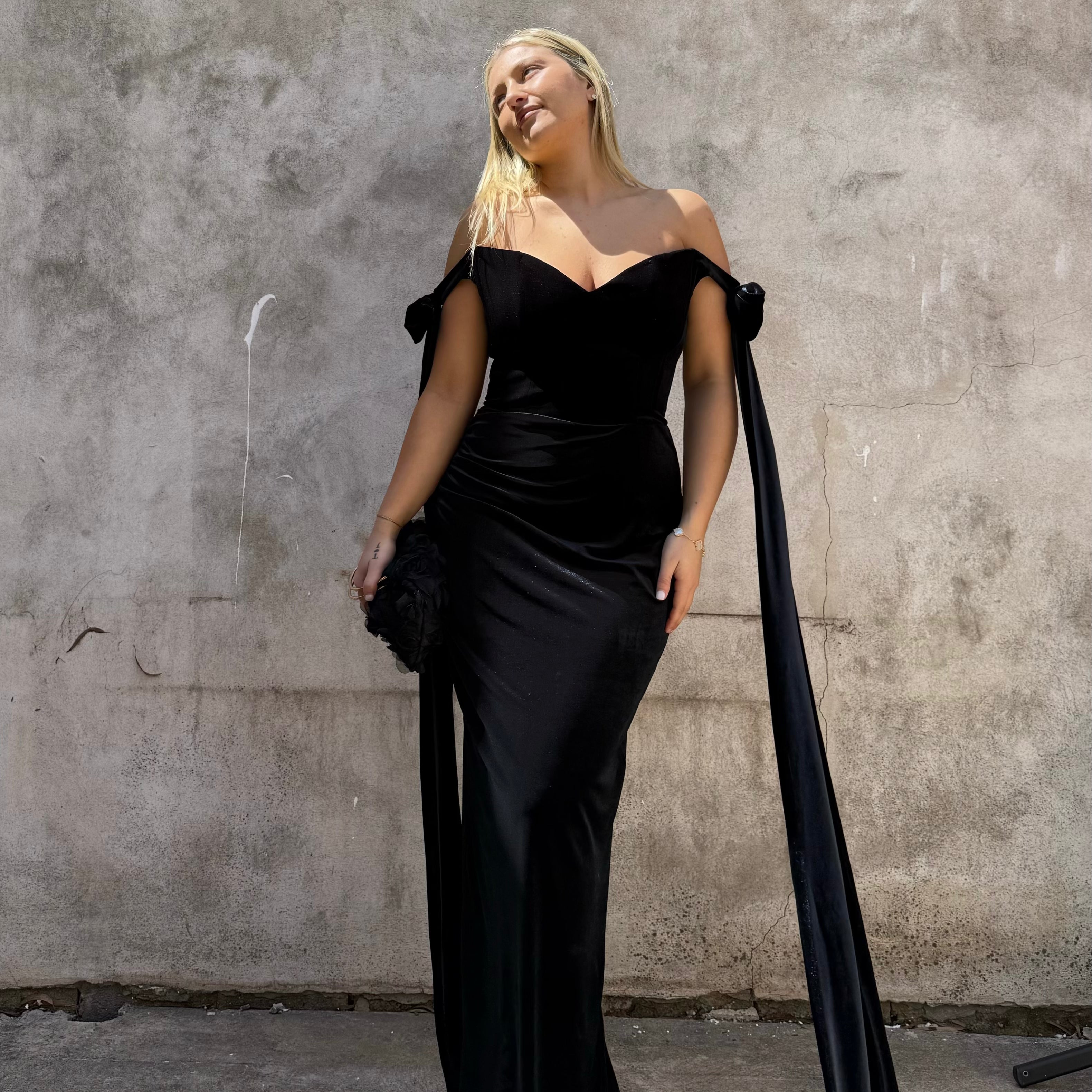 EFFIE KATS (black) Ginger velvet off shoulder gown