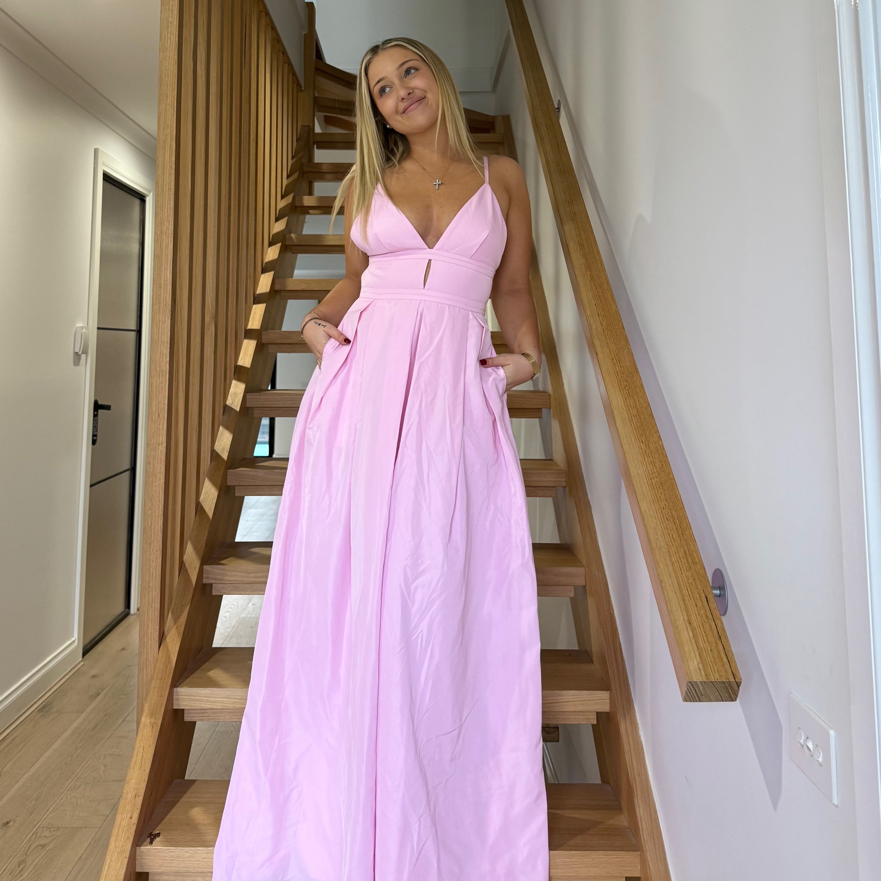 MANNING CARTELL (pink) Liquid Asset spaghetti strap gold hardware maxi