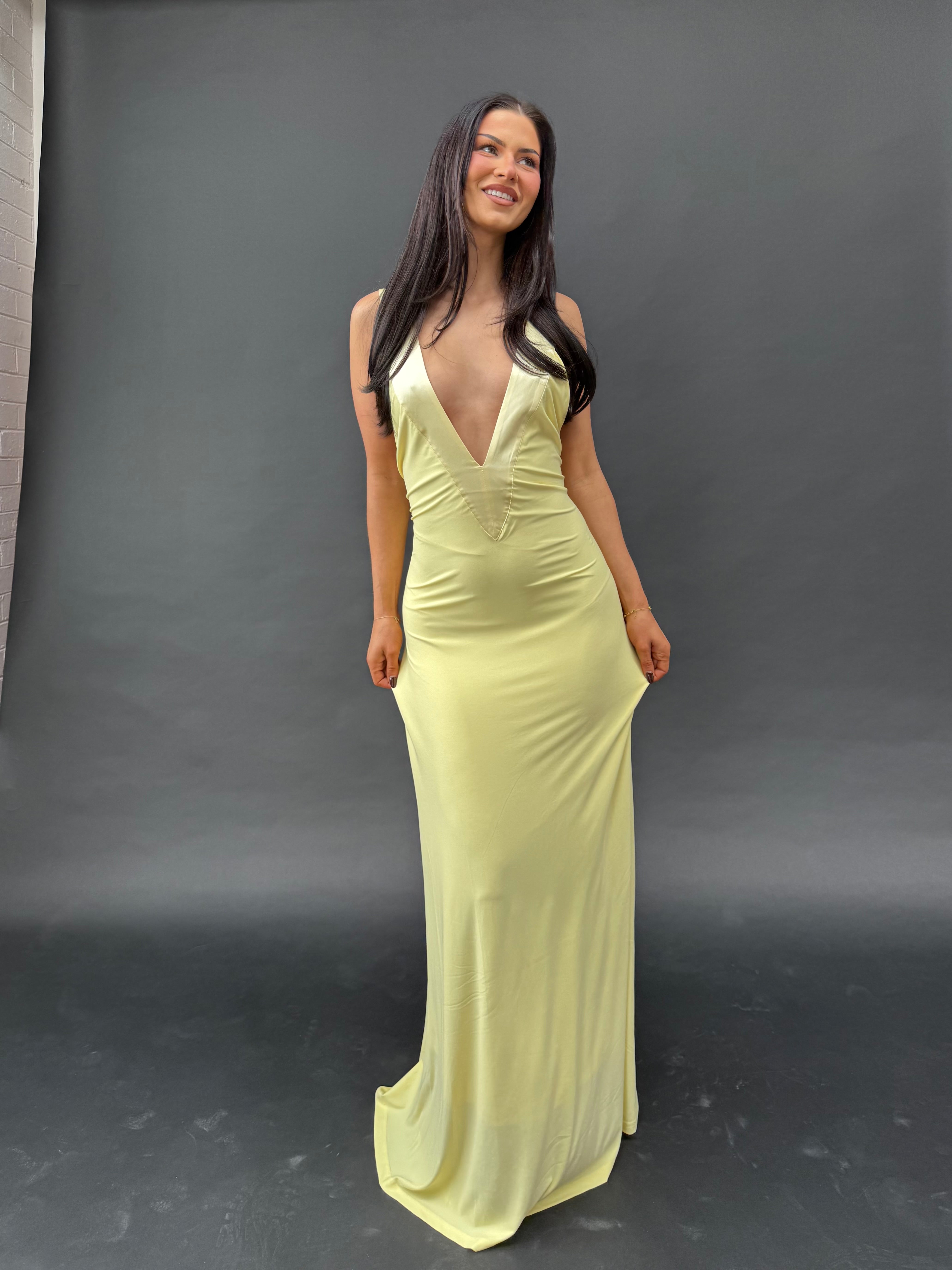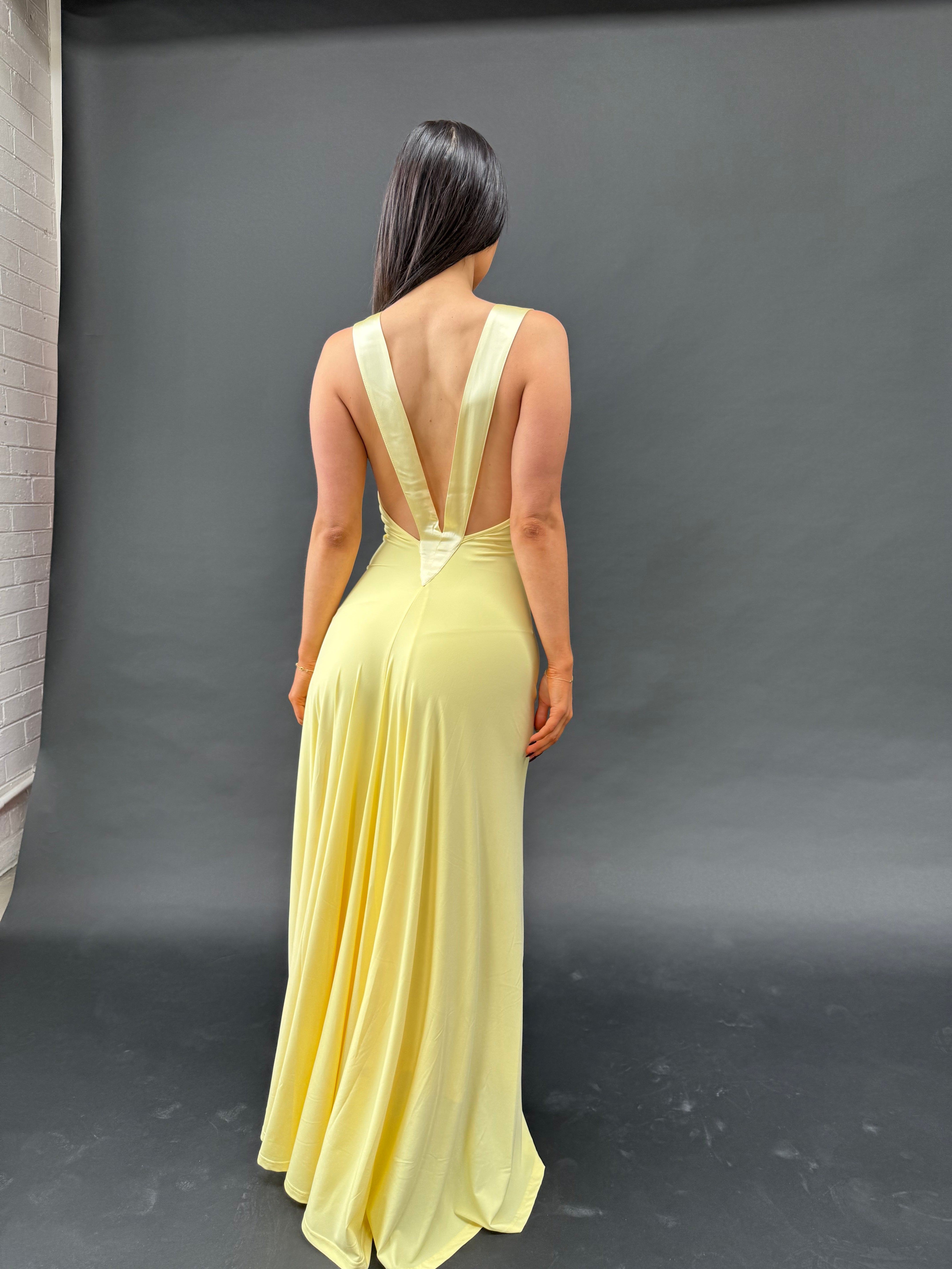ANCE GRIA (lemon yellow) Rosa deep plunge gown
