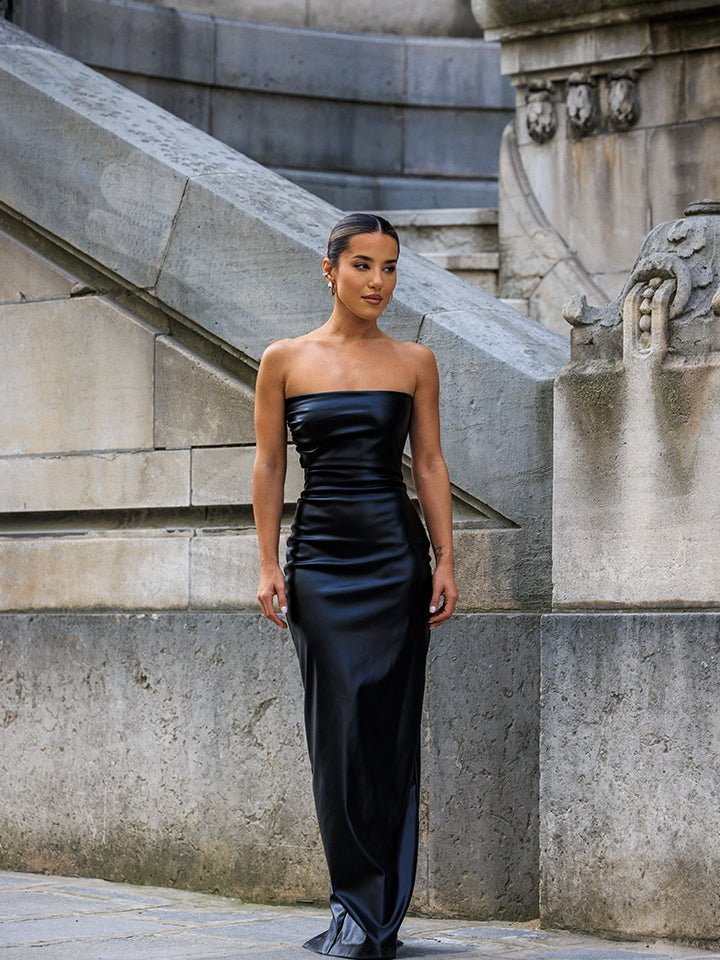 EFFIE KATS (black) Amelie faux leather strapless maxi