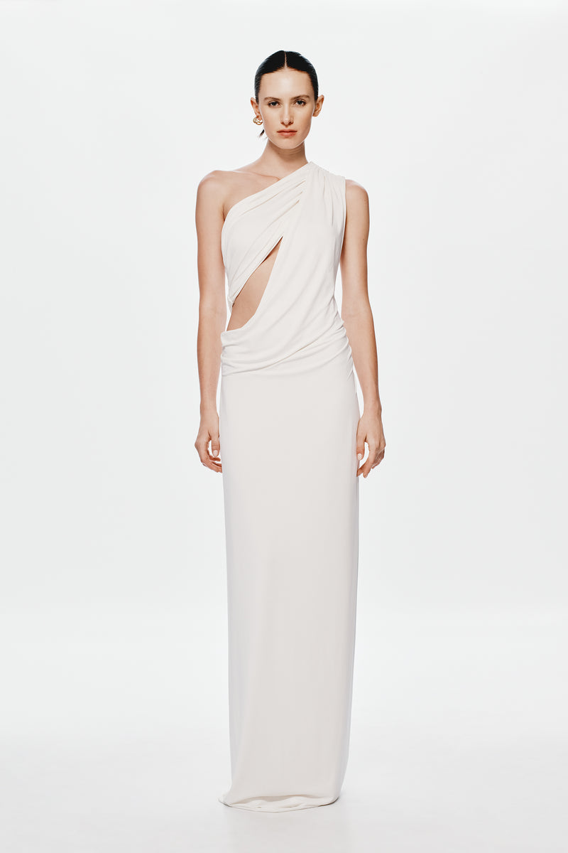 MISHA (white) Solstice one shoulder maxi