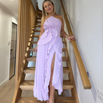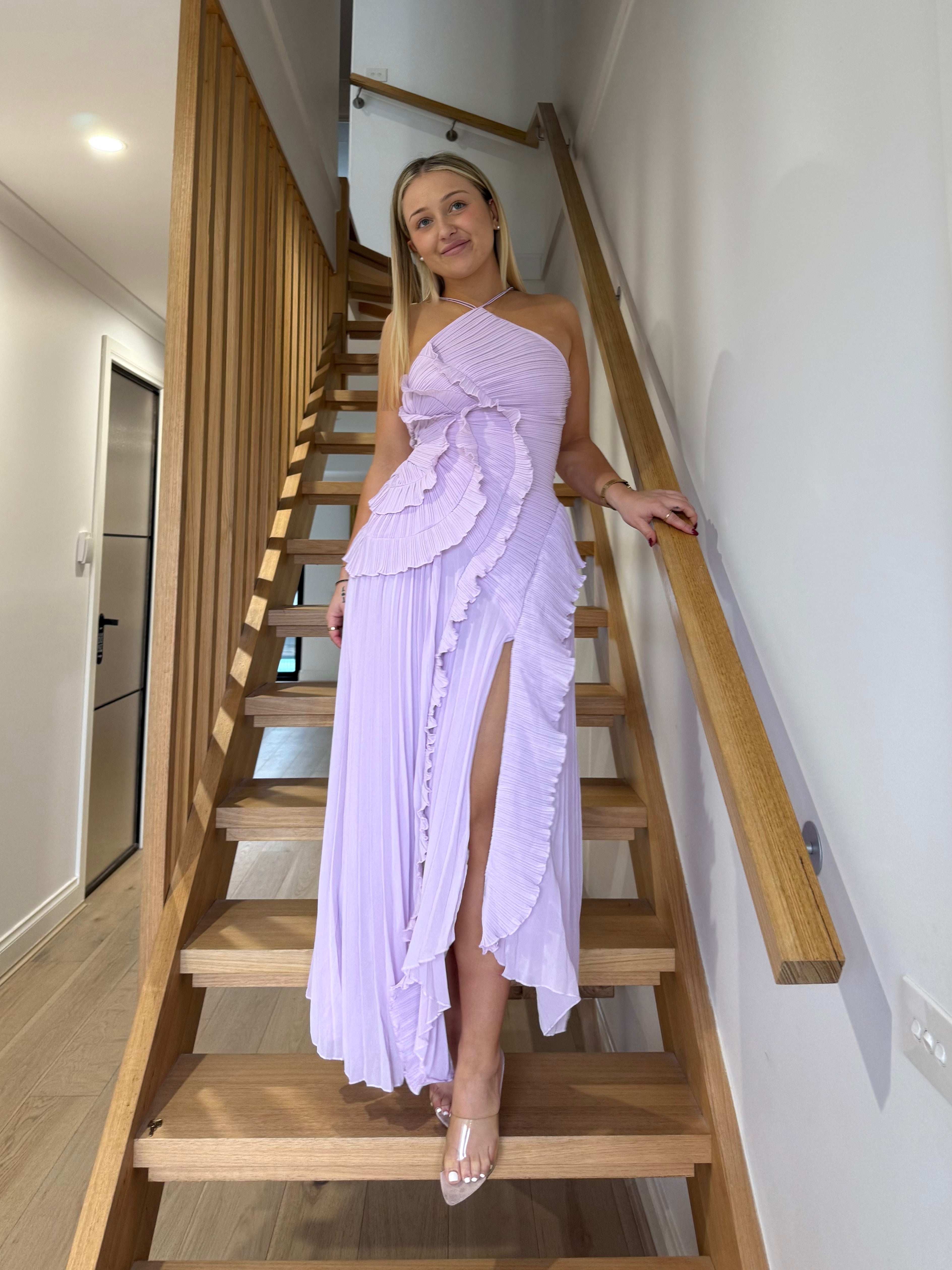 SIERRA DARIEN (purple) Pleated Halter Midi Dress With Cascading Ruffle