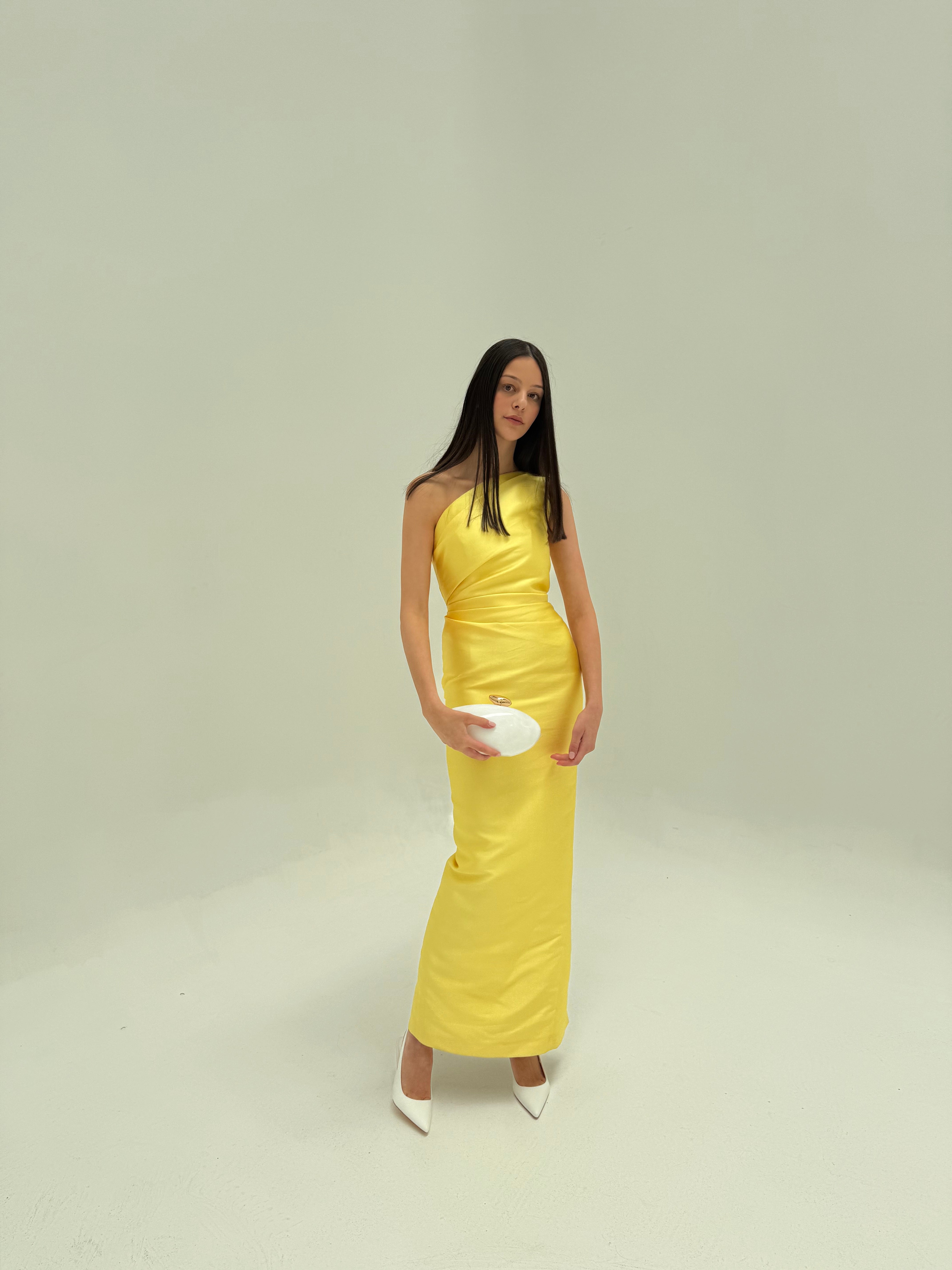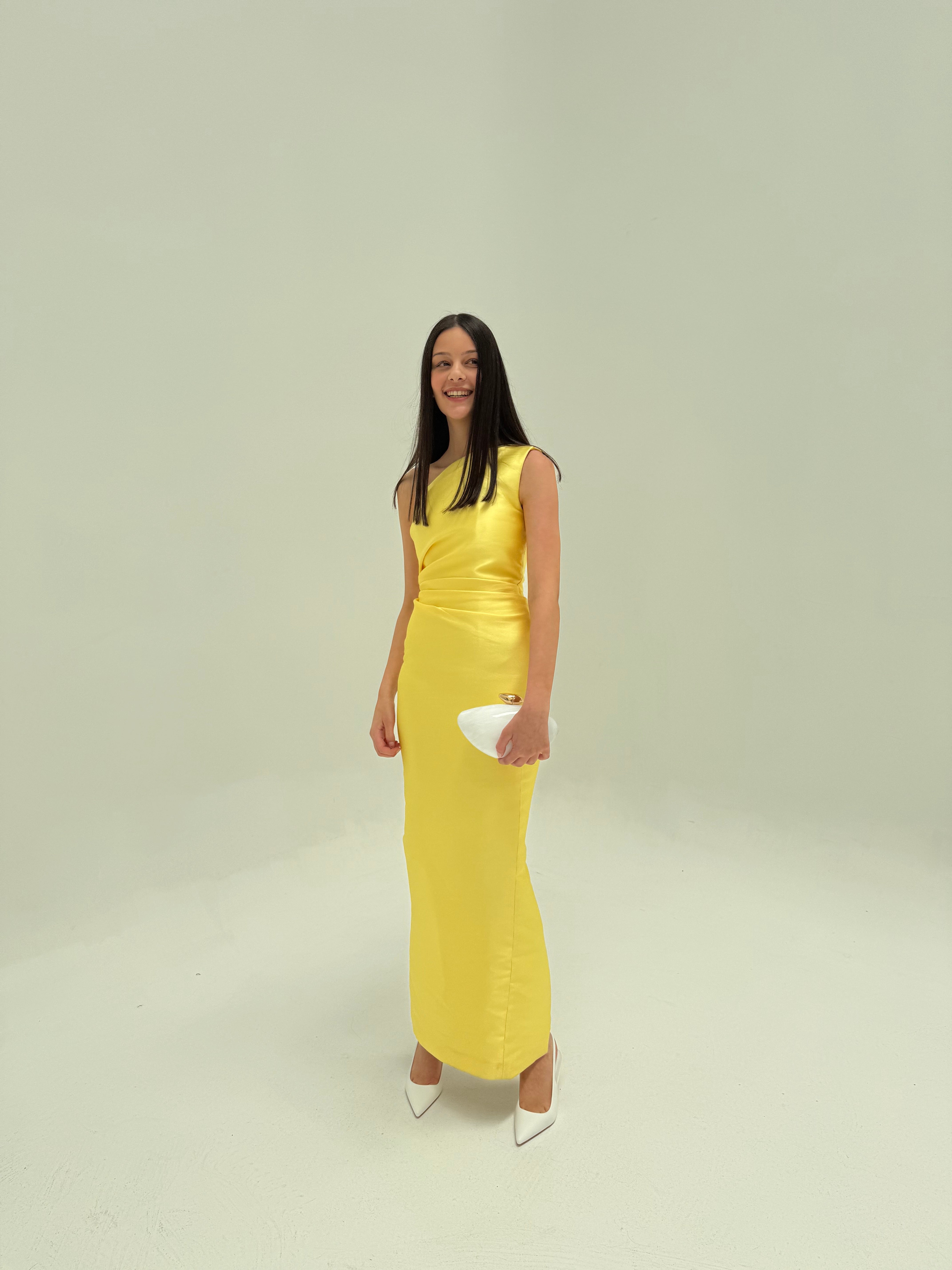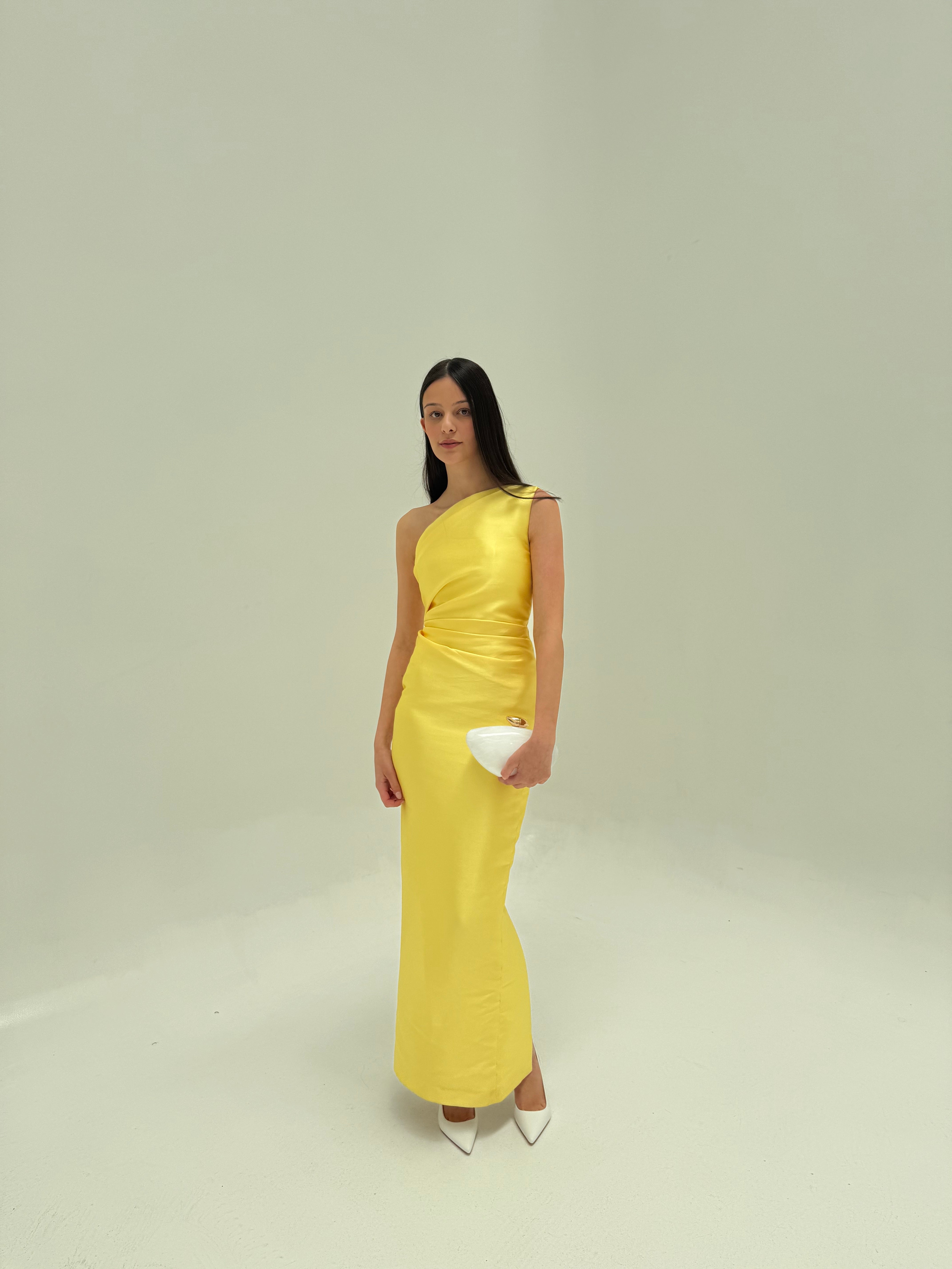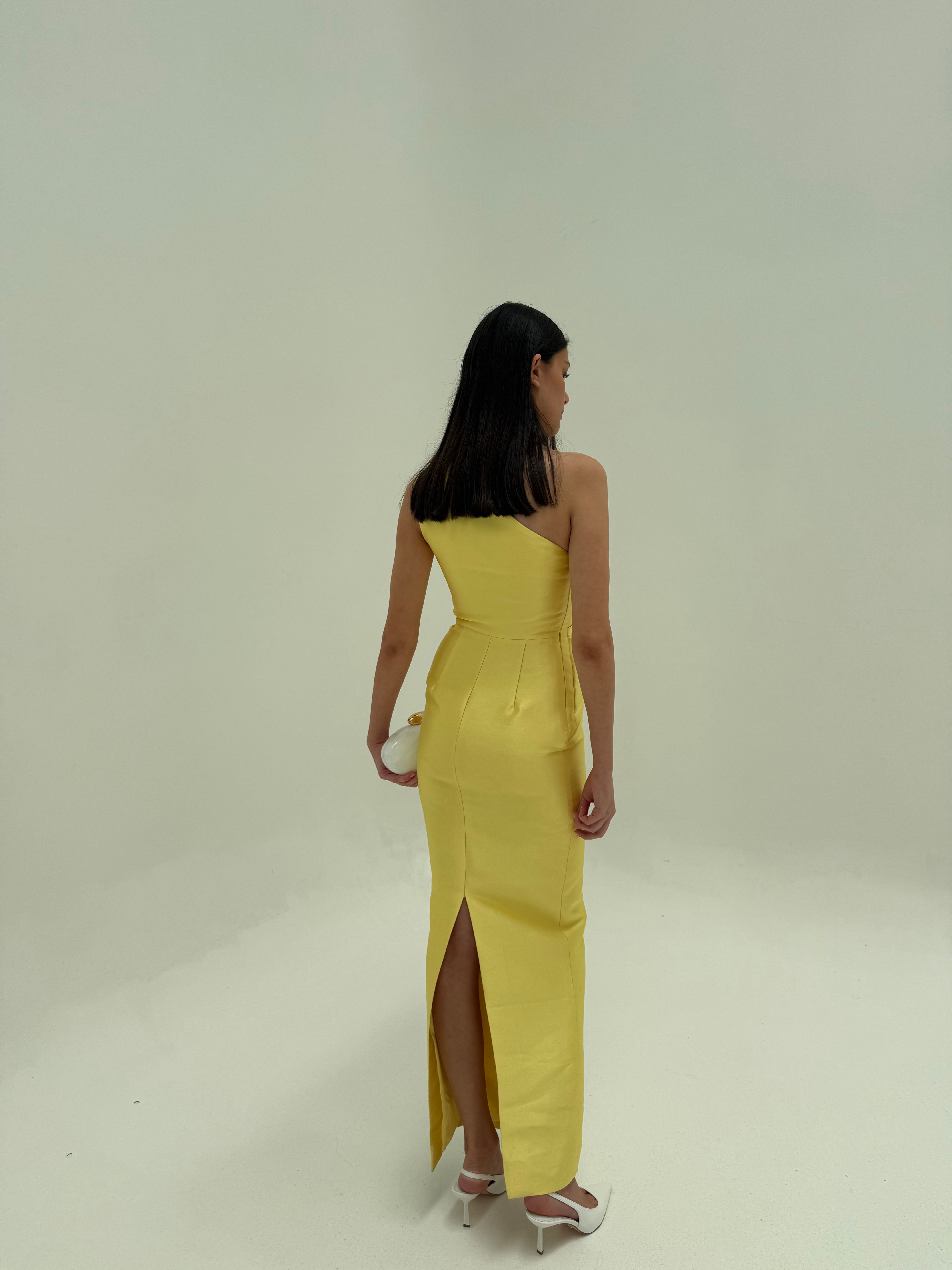 SOLACE LONDON (yellow) Kira Twill one shoulder gown